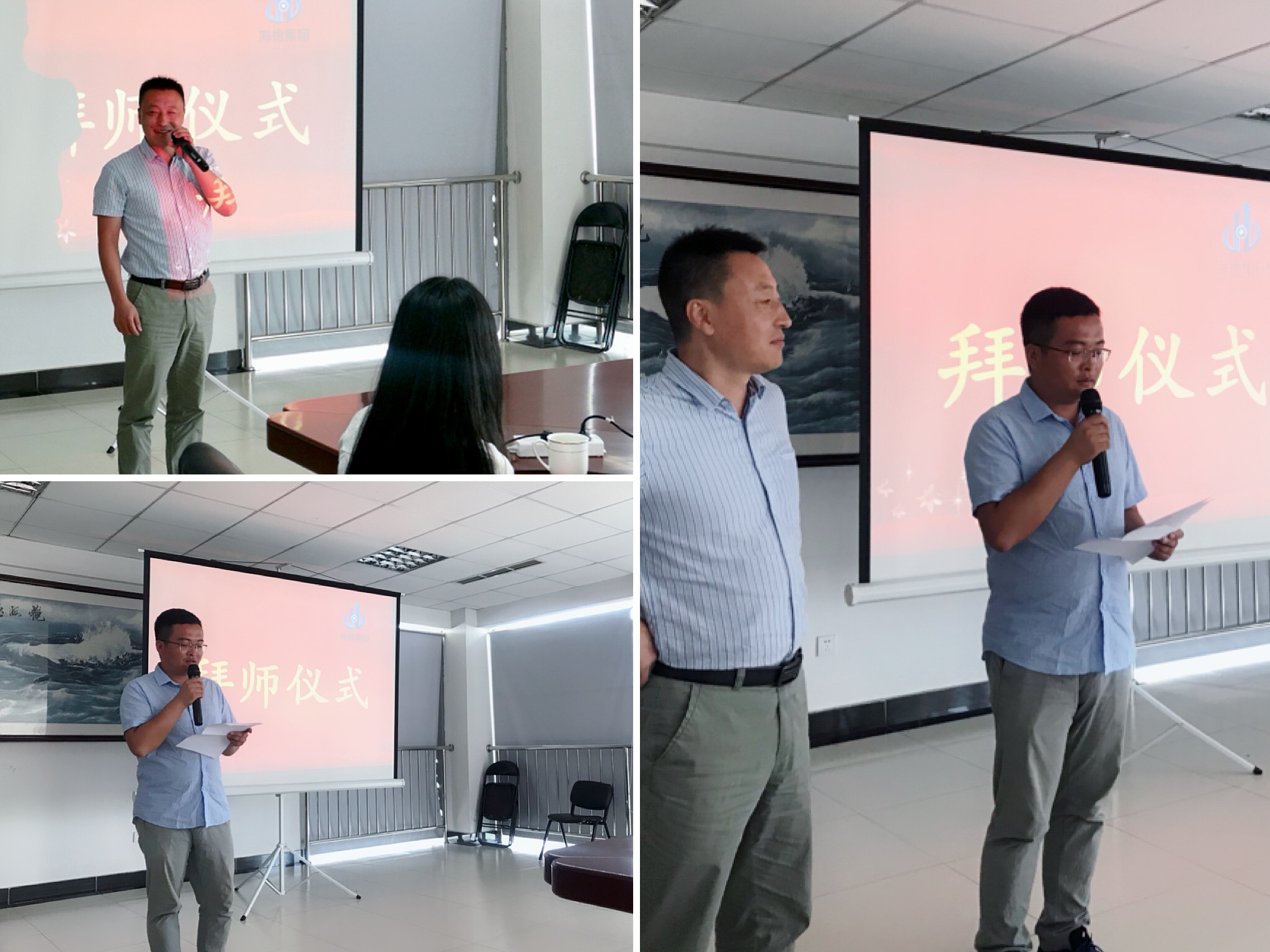 龍谷項目部經(jīng)理祁亮這對師徒代表,為新員工們樹立榜樣,傳授經(jīng)驗。李總首先分享了與祁亮建立師徒關(guān)系的經(jīng)過,歷數(shù)幾年來兩人
